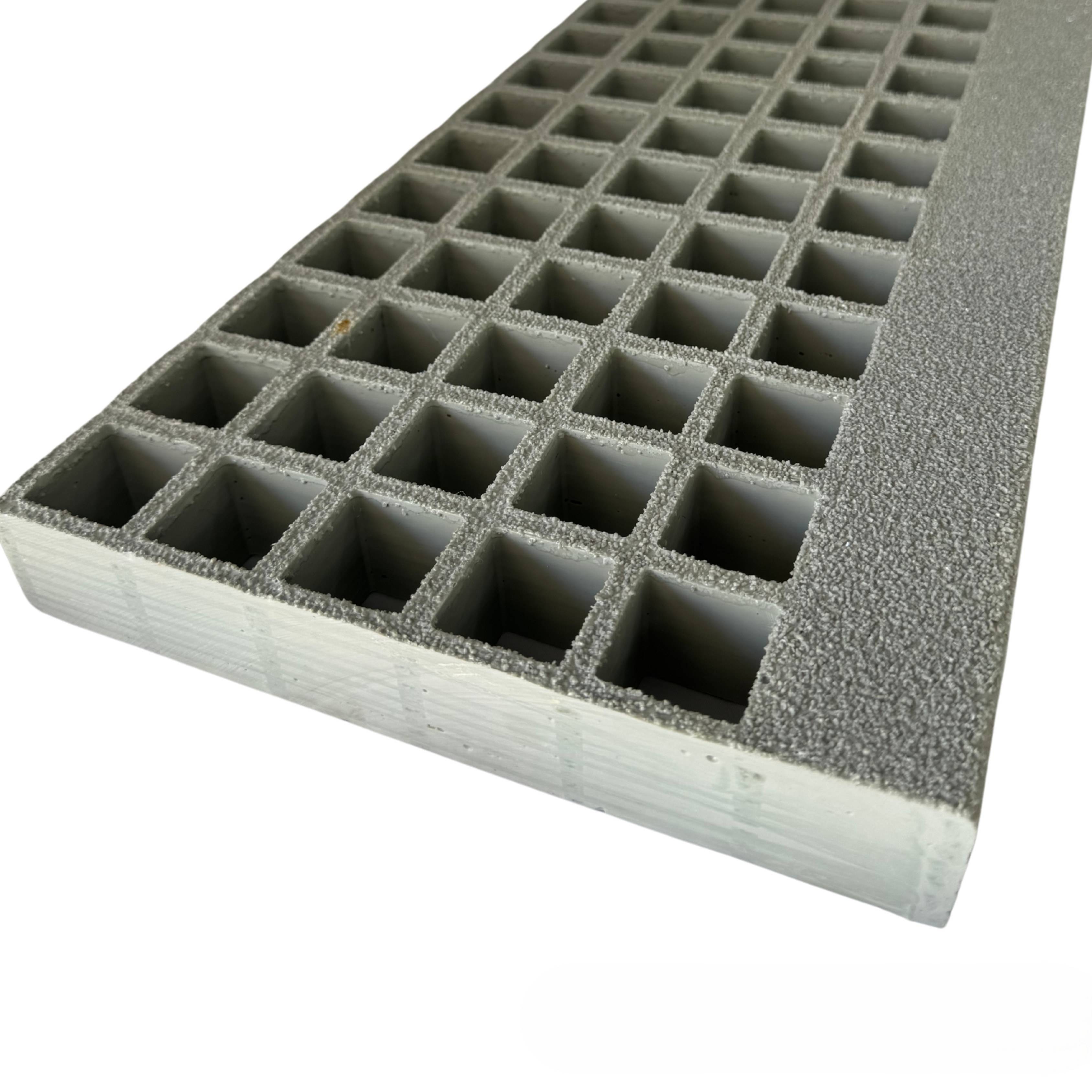 Een standaard kunststof traptrede met rechthoekige mazen een versterkte aantredeneus en een Quartz Gritt antislip toplaag. De trede is op maat te bestellen, de diepte is standaard 238 mm. De breedte van deze traptrede gaat tot 609, de mazen zijn 38 x 38 mm.